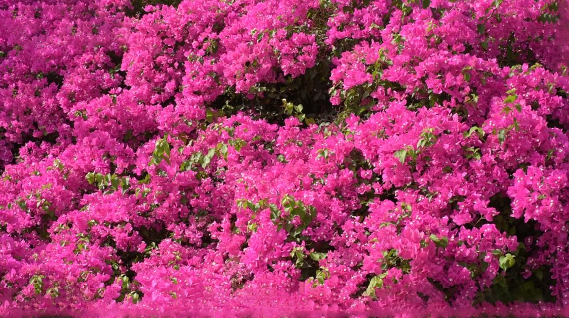 A close, immersive film of pink bougainvillea in bloom.